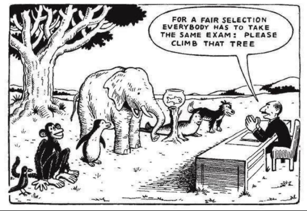 The heart of our work is the novel Fish in a Tree by Lynda Mullaly Hunt. The story follows Ally, a girl who struggles in school until she finds people who see her differently and help her recognize her own brilliance. Before even reading the first chapter, students make predictions about the book’s cover and title. This leads to an important visual discussion based on the comic inspired by the quote often linked to Einstein: “Everybody is a genius. But if you judge a fish by its ability to climb a tree, it will live its whole life believing that it is stupid.” The comic shows animals being tested in the same way, even though they are all completely different. It sets the stage for everything we’re about to learn.